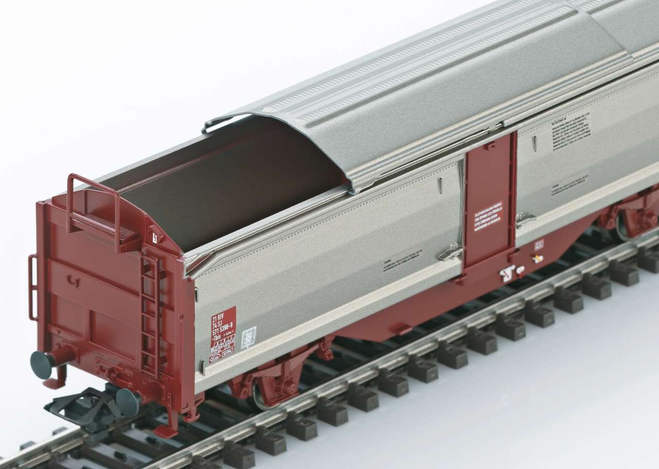 Vorbild: 3 zweiachsige Schiebedach-/Schiebewandwagen Bauart Tbis der Schwedischen Staatsbahnen (SJ). Alle Wagen in rotbrauner Grundfarbgebung mit grauen Schiebetüren und Schiebedächer. Ausführung mit gewölbten Schiebetüren und ohne Bremserbühnen. Betriebszustand um 1985.