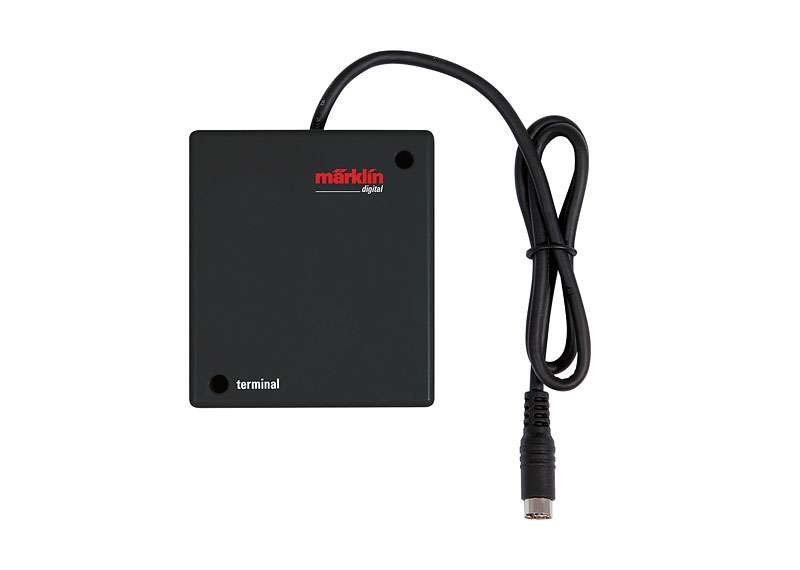 Anschlussmöglichkeit für zusätzliche Geräte aus dem Digital-Programm an die Central Station. Festes 9-poliges Anschlusskabel, 60 cm lang (verlängerbar mit 60126) und 9-polige Buchse für ein weiteres Terminal oder andere Geräte an der Hauptleitung. 4 Buchsen 7-polig zum Anschluss von Mobile Station (Adapterkabel 60124 notwendig) oder anderer Peripheriegeräte. Abmessungen 96 x 85 x 40 mm.