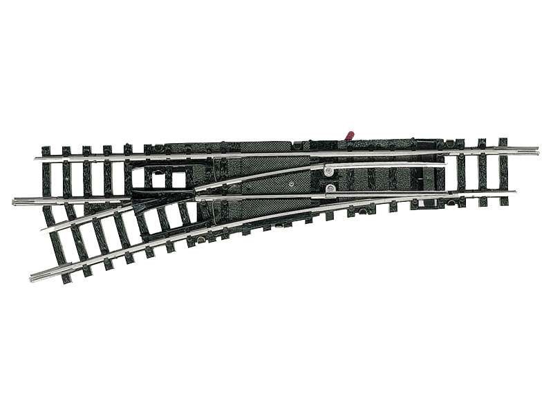 Weichen – 15° Für besonders schlanke Weichenstraßen. Gerades Gleis |< 112,6 mm >|Bogenradius = R4 -15° + 1 x 14903 Stopp-Weichen-Funktion wahlweise. Elektroantrieb ist nachrüstbar.